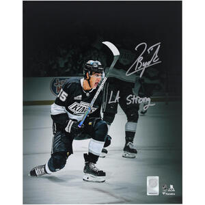 Quinton Byfield Los Angeles Kings Autographed 11" x 14" Black Jersey Celebration Spotlight Photograph with "LA Strong" Inscription - Limited Editio...Quinton Byfield Los Angeles Kings Autographed 11" x 14" B...