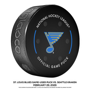 St. Louis Blues Game-Used Puck vs. Seattle Kraken on February 26, 2026 - Dylan Holloway (STL) 2nd NHL Hat Trick During Game (Not Goal Puck)St. Louis Blues Game-Used Puck vs. Seattle Kraken on February 26, 2...