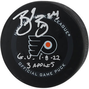 Brent Burns San Jose Sharks Autographed Game-Used Puck vs. Philadelphia Flyers on January 8, 2022 with Multiple InscriptionsBrent Burns San Jose Sharks Autographed Game-Used Puck vs. Philadel...