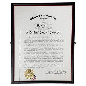 County of Wayne Framed 1971 Resolution Honoring Gordie HoweCounty of Wayne Framed 1971 Resolution Honoring Gordie Howe