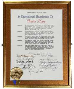 Gordie Howe's Framed City of Detroit ResolutionGordie Howe's Framed City of Detroit Resolution