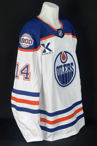 Mattias Ekholm #14 - 2025-26 Edmonton Oilers Pre-Game Warm-Up Worn Tribute Jersey From Adam Henrique's 1000th NHL Game On October 21, 2025Mattias Ekholm #14 - 2025-26 Edmonton Oilers Pre-Game Warm-Up Worn ...