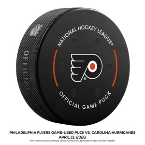 Philadelphia Flyers Game-Used Puck vs. Carolina Hurricanes on April 13, 2026 - Flyers Clinch Playoff Spot With Shootout WinPhiladelphia Flyers Game-Used Puck vs. Carolina Hurricanes on April...
