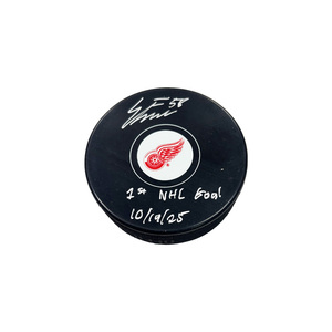 EMMITT FINNIE Signed Detroit Red Wings Puck - "1st Goal 10/19/25"EMMITT FINNIE Signed Detroit Red Wings Puck - "1st Goal 10/19/...