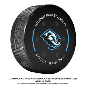 Utah Mammoth Game-Used Puck vs. Nashville Predators on April 9, 2026Utah Mammoth Game-Used Puck vs. Nashville Predators on April 9, 2026