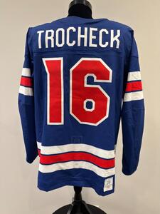 Vincent Trocheck USA Game-Used Blue Jersey worn v. Denmark on February 14, 2026, as a part of the 2026 Milano Cortina Winter Games.Vincent Trocheck USA Game-Used Blue Jersey worn v. Denmark on Febru...
