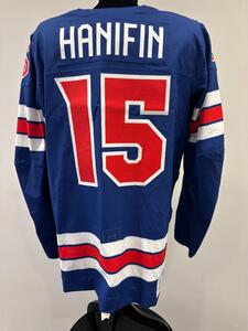 Noah Hanifin USA Game-Used Blue Jersey worn v. Denmark on February 14, 2026, as a part of the 2026 Milano Cortina Winter Games.Noah Hanifin USA Game-Used Blue Jersey worn v. Denmark on February ...