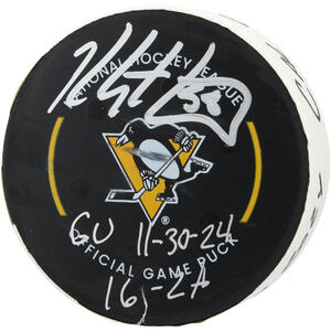 Kris Letang Pittsburgh Penguins Autographed Game-Used Puck vs. Calgary Flames on November 30, 2024 with Multiple InscriptionsKris Letang Pittsburgh Penguins Autographed Game-Used Puck vs. Calg...