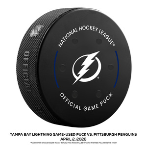 Tampa Bay Lightning Game-Used Puck vs. Pittsburgh Penguins on April 2, 2026 - Anthony Cirelli (TBL) Gets 2nd NHL Hat Trick, Lightning Reach 100 Points (Not a Goal Puck)Tampa Bay Lightning Game-Used Puck vs. Pittsburgh Penguins on April...