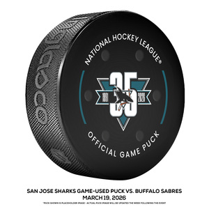 San Jose Sharks Game-Used Puck vs. Buffalo Sabres on March 19, 2026San Jose Sharks Game-Used Puck vs. Buffalo Sabres on March 19, 2026