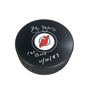 BRENDAN SHANAHAN Signed New Jersey Devils Puck - "1st Goal 11/10/87" InscriptionBRENDAN SHANAHAN Signed New Jersey Devils Puck - "1st Goal 11/...