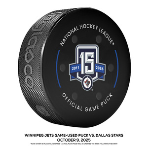 Winnipeg Jets Game-Used Puck vs. Dallas Stars on October 9, 2025 - Jets' Kyle Connor Hat Trick During Game & Jonathan Toews Return to NHLWinnipeg Jets Game-Used Puck vs. Dallas Stars on October 9, 2025 - ...