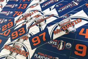 Complete Set of 36 Edmonton Oilers Locker Room Stall Nameplates Used During The 2025 NHL Play-Offs Home Game Nights - Rounds 1 Vs LA Kings & Round #2 Vs Vegas Golden K...Complete Set of 36 Edmonton Oilers Locker Room Stall Nameplates Use...