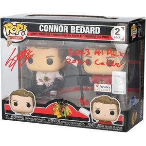 Connor Bedard Chicago Blackhawks Autographed Two-Pack Funko Pop! Vinyl Figure with Multiple Inscriptions - Limited Edition of 10 Connor Bedard Chicago Blackhawks Autographed Two-Pack Funko Pop! Vi...