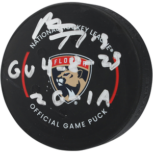 Matthew Tkachuk Florida Panthers Autographed Game-Used Puck vs. Boston Bruins on April 8, 2023 with Multiple InscriptionsMatthew Tkachuk Florida Panthers Autographed Game-Used Puck vs. Bos...