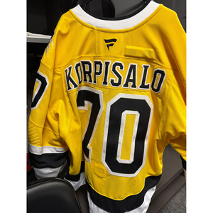Joonas Korpisalo Boston Bruins #70 2026 NHL Stadium Series Player-Worn Yellow Jersey - Worn During the 1st Period on February 1, 2026 - Backup GoalieJoonas Korpisalo Boston Bruins #70 2026 NHL Stadium Series Player-W...