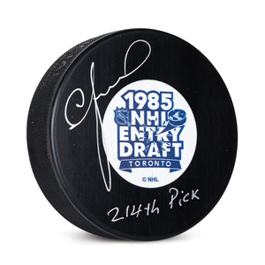 Igor Larionov Signed 1985 NHL Entry Draft Puck with 214th Pick NoteIgor Larionov Signed 1985 NHL Entry Draft Puck with 214th Pick Note