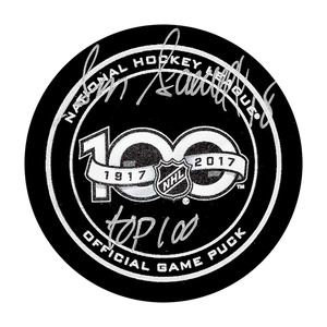 Serge Savard Autographed NHL 100th Anniversary Official Game Puck w/TOP 100 InscriptionSerge Savard Autographed NHL 100th Anniversary Official Game Puck w...