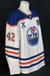 Kasperi Kapanen #42 - 2025 Stanley Cup Final Edmonton Oilers Game-Worn White Set #1 Jersey - Worn For Game #3 vs Florida PanthersKasperi Kapanen #42 - 2025 Stanley Cup Final Edmonton Oilers Game-W...