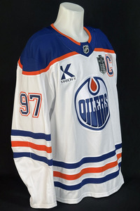 Connor McDavid #97 With "C" - 2025 Stanley Cup Final Edmonton Oilers Game-Worn White Set #1 Jersey - Worn For Game #3 vs Florida PanthersConnor McDavid #97 With "C" - 2025 Stanley Cup Final Edmo...