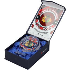 Connor Bedard Chicago Blackhawks Autographed NHL Debut Crystal Puck with "Lets Go Hawks" Inscription - Filled with Ice from NHL Debut Game Connor Bedard Chicago Blackhawks Autographed NHL Debut Crystal Puck...