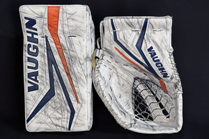 Calvin Pickard #30 - Autographed 2023-24 Edmonton Oilers Game-Used Vaughn Trapper & Blocker - Worn & Photo-matched To 2024 Stanley Cup Finals vs Florida Panthers (BACK...Calvin Pickard #30 - Autographed 2023-24 Edmonton Oilers Game-Used ...