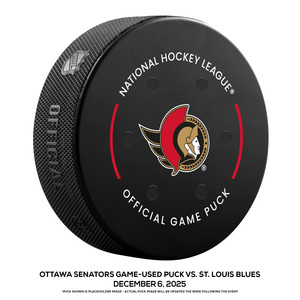 Ottawa Senators Game-Used Puck vs. St. Louis Blues on December 6, 2025Ottawa Senators Game-Used Puck vs. St. Louis Blues on December 6, 2025
