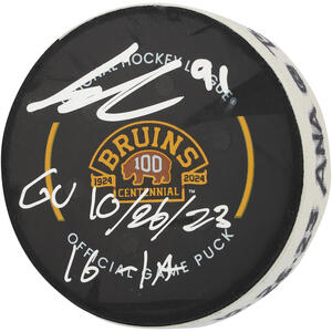 Leo Carlsson Anaheim Ducks Autographed Game-Used Puck vs. Boston Bruins on October 26, 2023 with Multiple InscriptionsLeo Carlsson Anaheim Ducks Autographed Game-Used Puck vs. Boston Br...