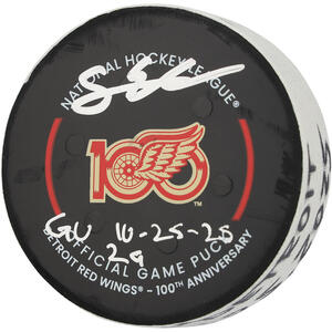 Simon Edvinsson Detroit Red Wings Autographed Game-Used Puck vs. St. Louis Blues on October 25, 2025 with Multiple InscriptionsSimon Edvinsson Detroit Red Wings Autographed Game-Used Puck vs. St...