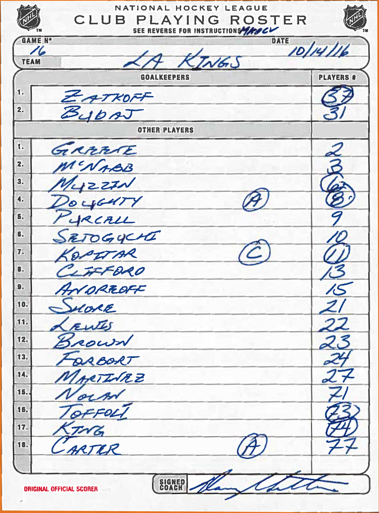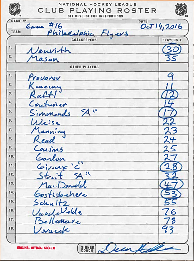 Philadelphia Flyers Framed Original Line-Up Cards From October 14, 2016, Both Travis Konecny and Ivan Provorov NHL Debuts & 1st Points