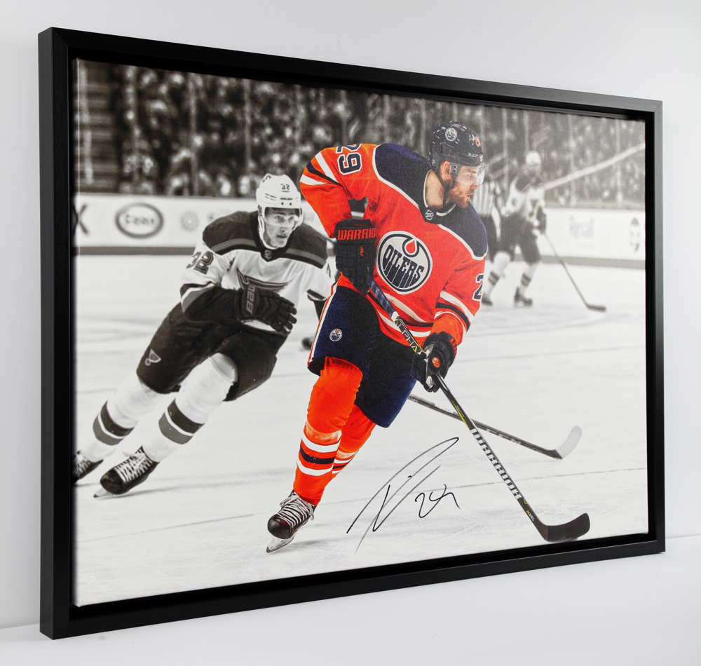 Leon Draisaitl #29 - Autographed & Framed Edmonton Oilers 20" x 29" Canvas Action Photo