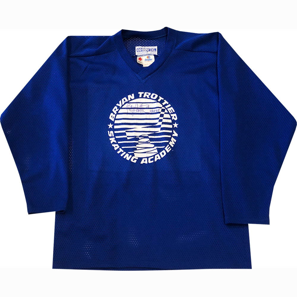 You are bidding on a hockey jersey that was owned and worn by the late, great Gordie Howe. This size XL Cosby Cooper jersey was worn by Howe in the mid 1980's during an appearance at the Bryan Trottier Skating Academy. The jersey features the academy logo on the front as well as "Howe 9" on the reverse. Trottier has since autographed the jersey in blue on the front logo.
