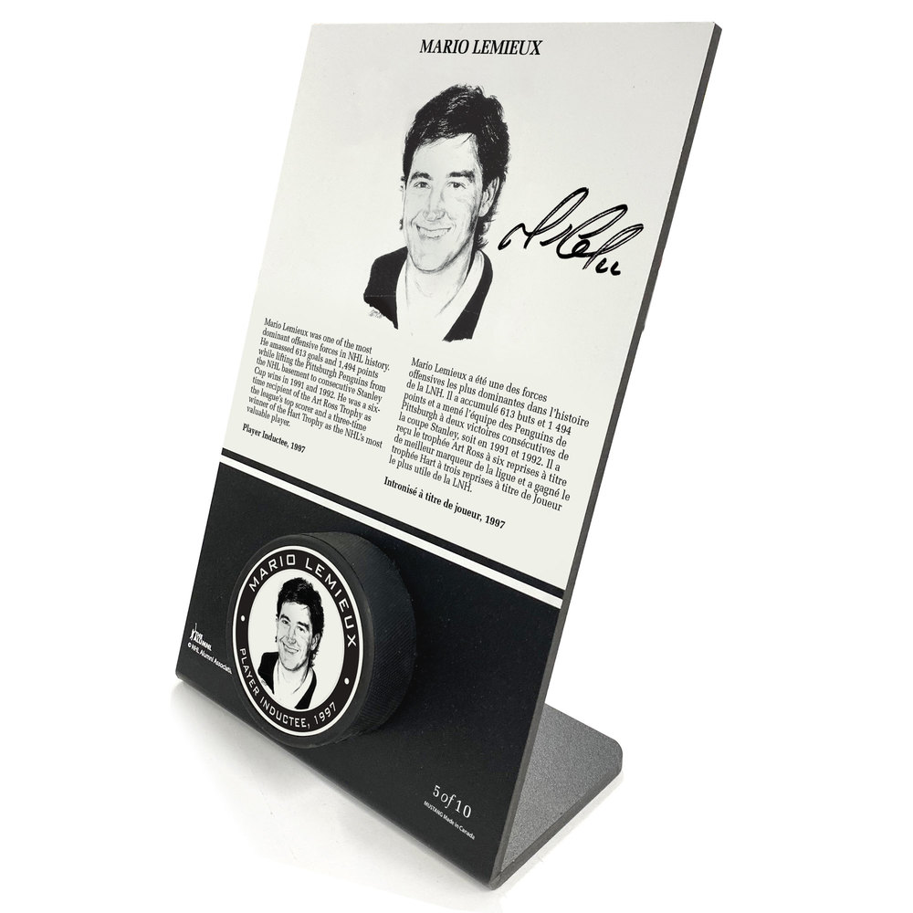 Mario Lemieux Autographed Legends Line Honoured Member Puck Stand - Limited Edition 5/10