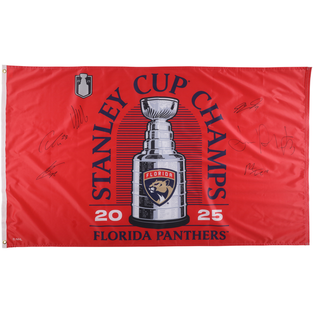 Florida Panthers Autographed 2025 Stanley Cup Champions 3' x 5' Single Sided Deluxe Locker Room Flag with 6 Signatures