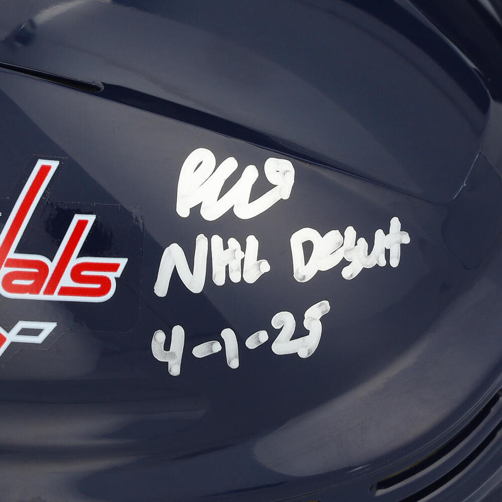 Ryan Leonard Washington Capitals Autographed Navy Mini Helmet with "NHL Debut 4/1/25" Inscription
