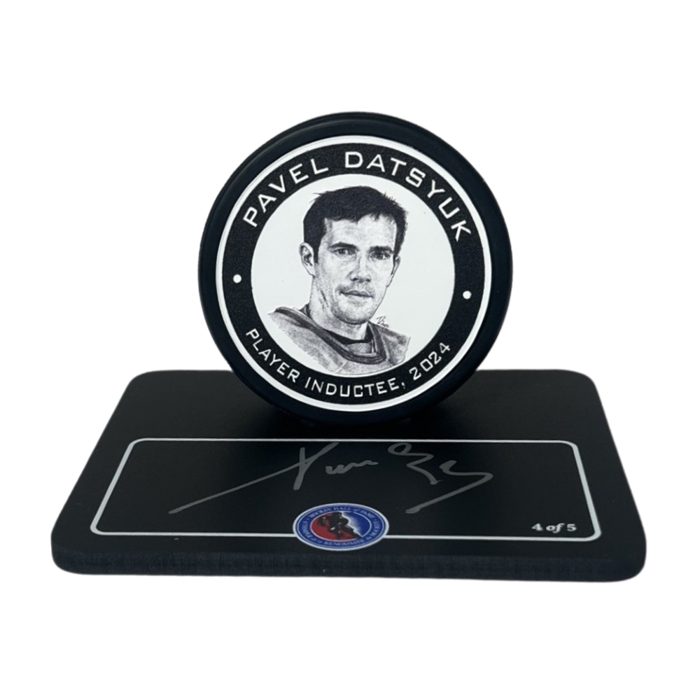 Pavel Datsyuk Autographed Legends Line Honoured Member Puck Display Stand - Limited Edition 4/5