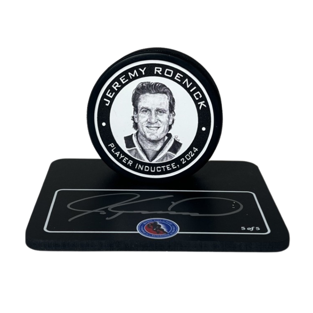 Jeremy Roenick Autographed Legends Line Honoured Member Puck Display Stand - Limited Edition 4/5