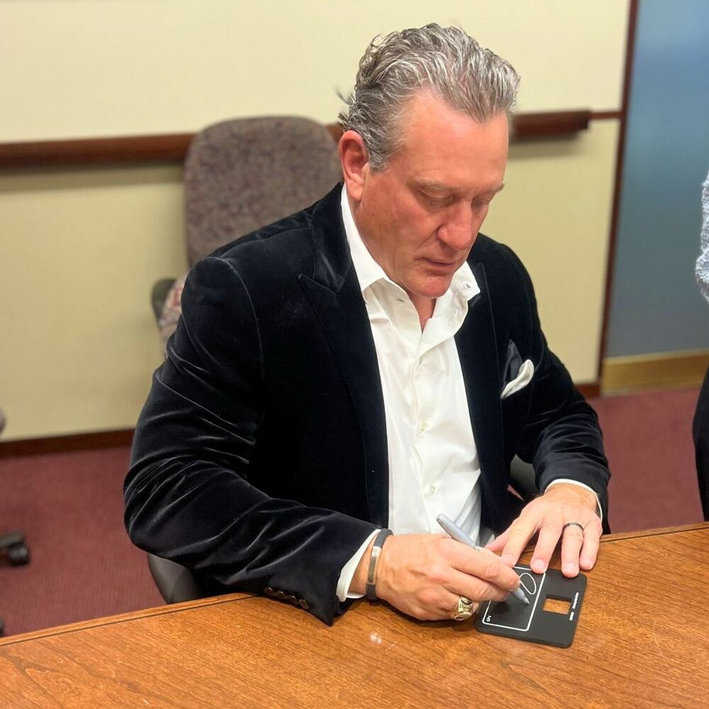 his Inductee portrait on a 3D textured puck that can rest on a hard plastic