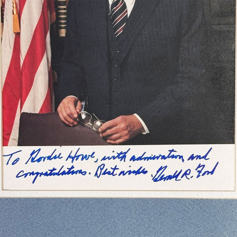 Gerald Ford Autographed Framed 8X10 Photo - Personalized to Gordie Howe