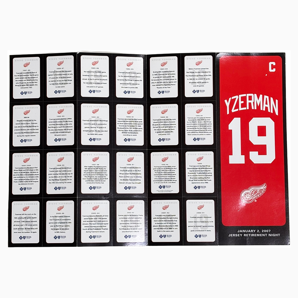 Steve Yzerman Jersey Retirement Night Collector Card Booklet