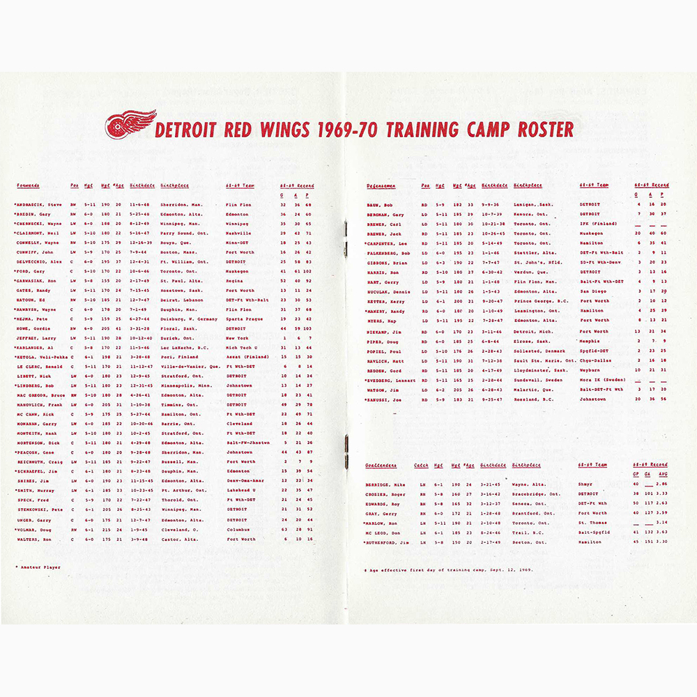 This 1969 Detroit Red Wings Training Camp Guide comes from the personal collection of Mr. Hockey himself. This was Gordie's second last season with the Red Wings in which he put up 71 points and 31 goals. Gordie has added has added his signature to the cover.