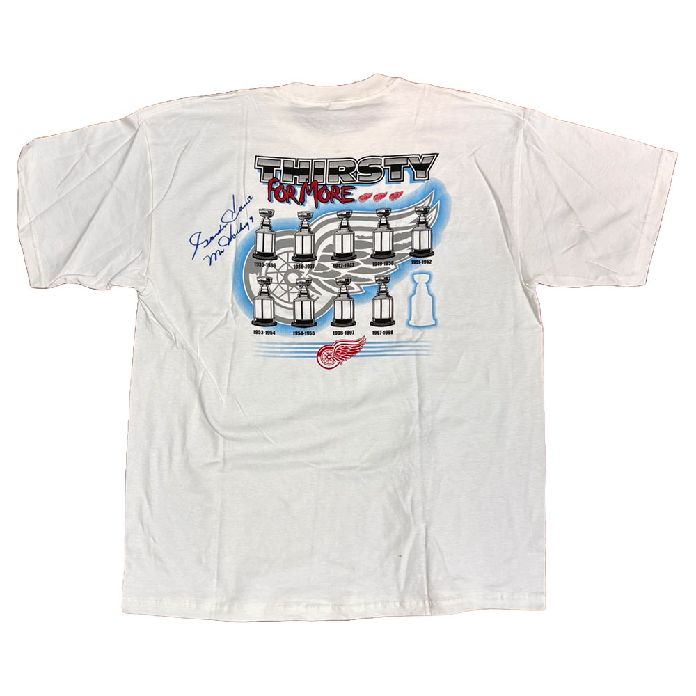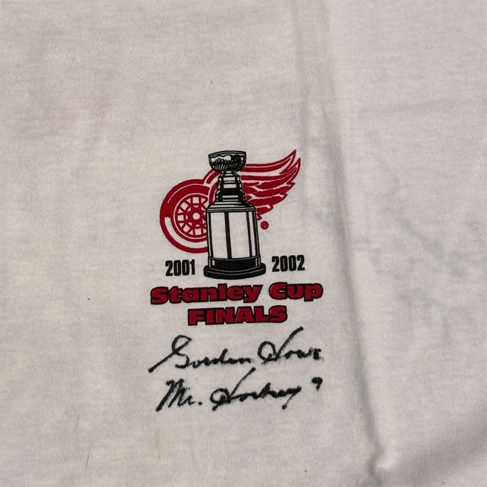 Gordie Howe Twice-Signed 2001-02 Detroit Red Wings Stanley Cup Finals T-Shirt