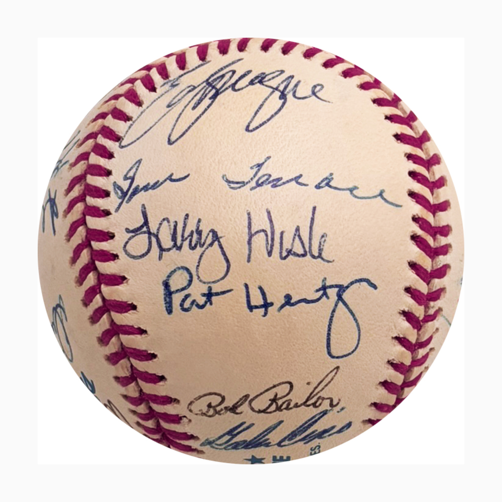 Bid on this Official American League Baseball that has been signed by members of the 1993 Toronto Blue Jays. Signatures from players and coaches include Dick Chofield, Al Leiter, Mike Timlin, Danny Cox, Randy Knorr, Devon White, Turner Ward, Paul Molitor, Scott Brow, Tony Castillo, Dave Stewart, Mark Eichhorn, Duane Ward, John Olerud, Ed Sprague, Pat Hentgen Woody Williams, Cito Gaston, John Sullivan, Gene Tenace, Larry Hisle, Bob Bailor, and Galen CiscoIt. It comes from the collection of the former Toronto Blue Jays team photographer. Some spotting visible due to age.