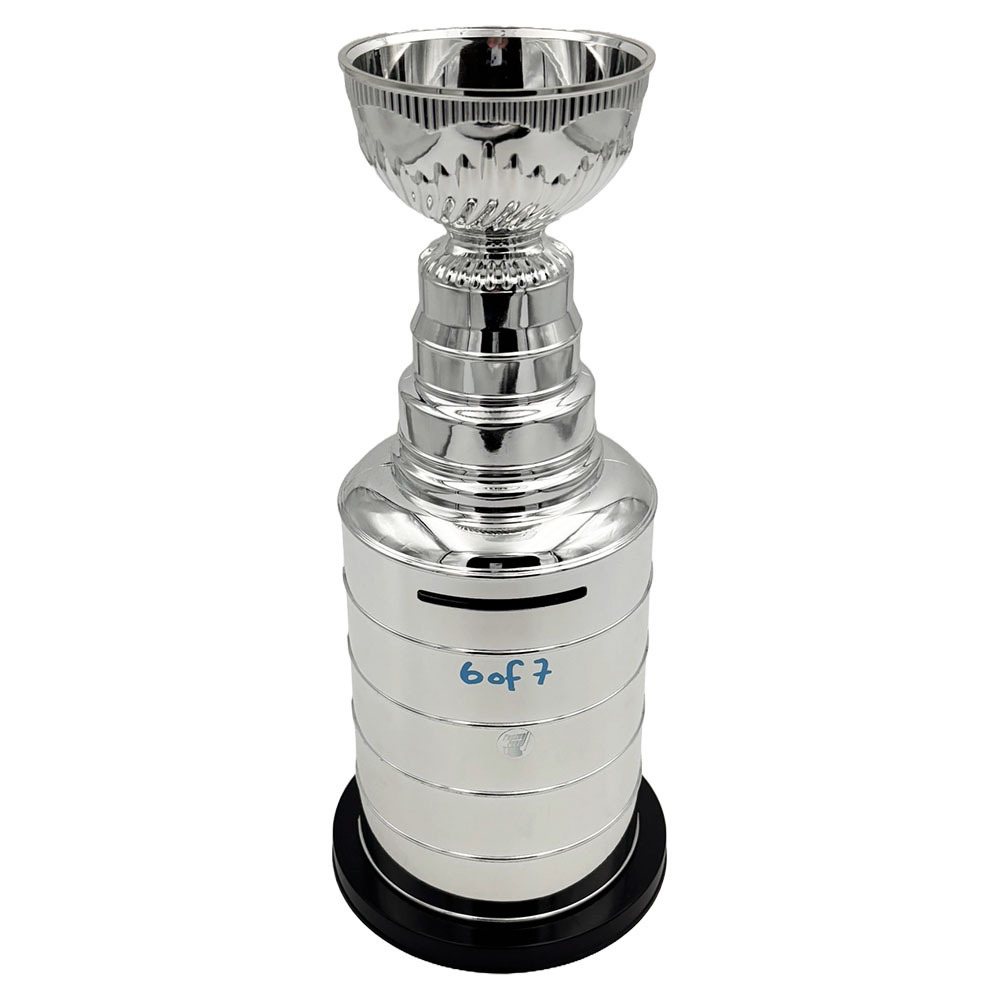 This incredible 14" NHL licensed replica Stanley Cup has been autographed by hockey legend - Paul Coffey. He has included multiple inscriptions including his # of All-Star Games, Norris Trophies, Stanley Cups, HOF year and single-season goal record. The Stanley Cup is made of high quality ABS materials and comes complete with original packaging. Limited-Edition #6/7.
