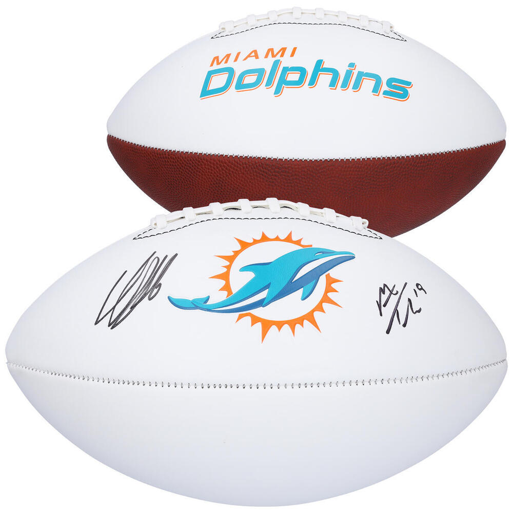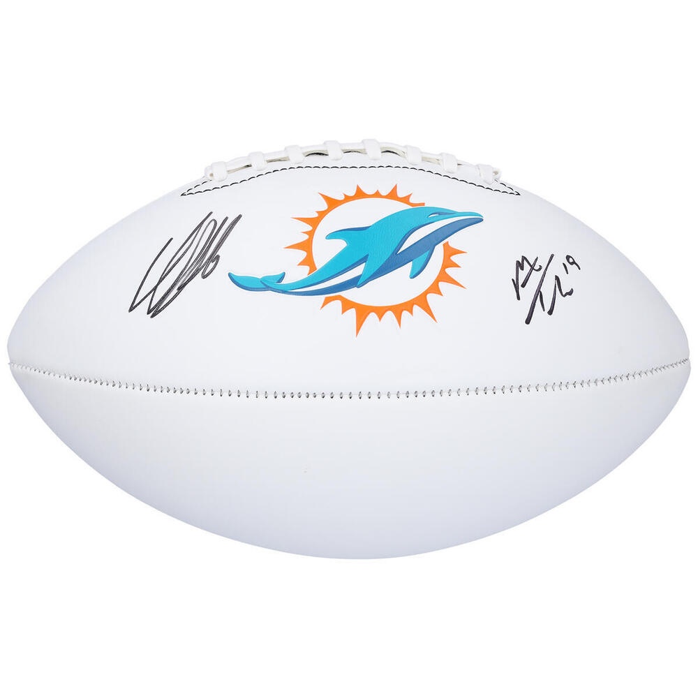 Matthew Tkachuk and Aleksander Barkov Florida Panthers Autographed Miami Dolphins White Panel Football