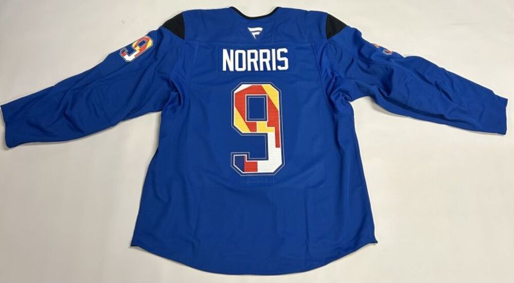 Josh Norris 2025-26 Buffalo Sabres Native American Heritage Night Jersey - Jersey designed by artist Peter Jemison. Team issued practice jersey - jersey not worn. Size 52. Includes a certificate of authenticity. Proceeds to benefit Western Door Hockey.