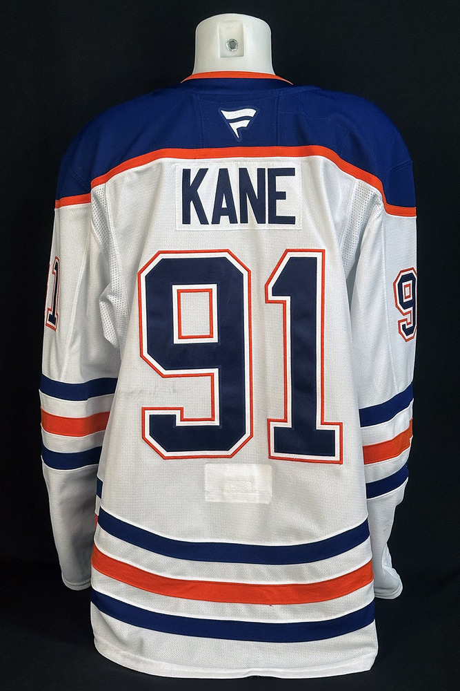 Welcome to our Edmonton Oilers Game Worn Jersey Program Auction! You are bidding on this Evander Kane #91 - 2025 Western Conference Final Edmonton Oilers Game-Worn White Play-off Set #2 Jersey - Worn For 3 Games vs Dallas Stars (Game #1, 2 & 5). The team wore this particular set of white jerseys during the 2025 Western Conference Final for road games vs the Dallas Stars (Round #3). This Fanatics-made Oilers jersey features a special uniform set tag sewn into the inside bottom hem that reads "Edmonton Oilers, 2024-25 Season, Playoff Set #2, Western Conference Final vs Dallas Stars" along with the facsimile signature of Jeff Lang the team's Equipment Manager. In addition, there is an Edmonton Oilers Game-Worn Jersey Inventory tag #C00471 sewn into the inside bottom left hem. Tagging inside the collar includes an imprinted Made in Canada Size 56 imprint. This particular jersey was worn by Oilers forward Evander Kane and is crested with his #91 and surname on the back. As is to be expected, the game wear is light but evident considering the jersey was worn only for this one series and was washed following the games. It will come exactly as worn and will not be autographed. In addition to the set tag and serial number certification mentioned above the jersey comes complete with a Letter of Authenticity from the Edmonton Oilers Hockey Club.