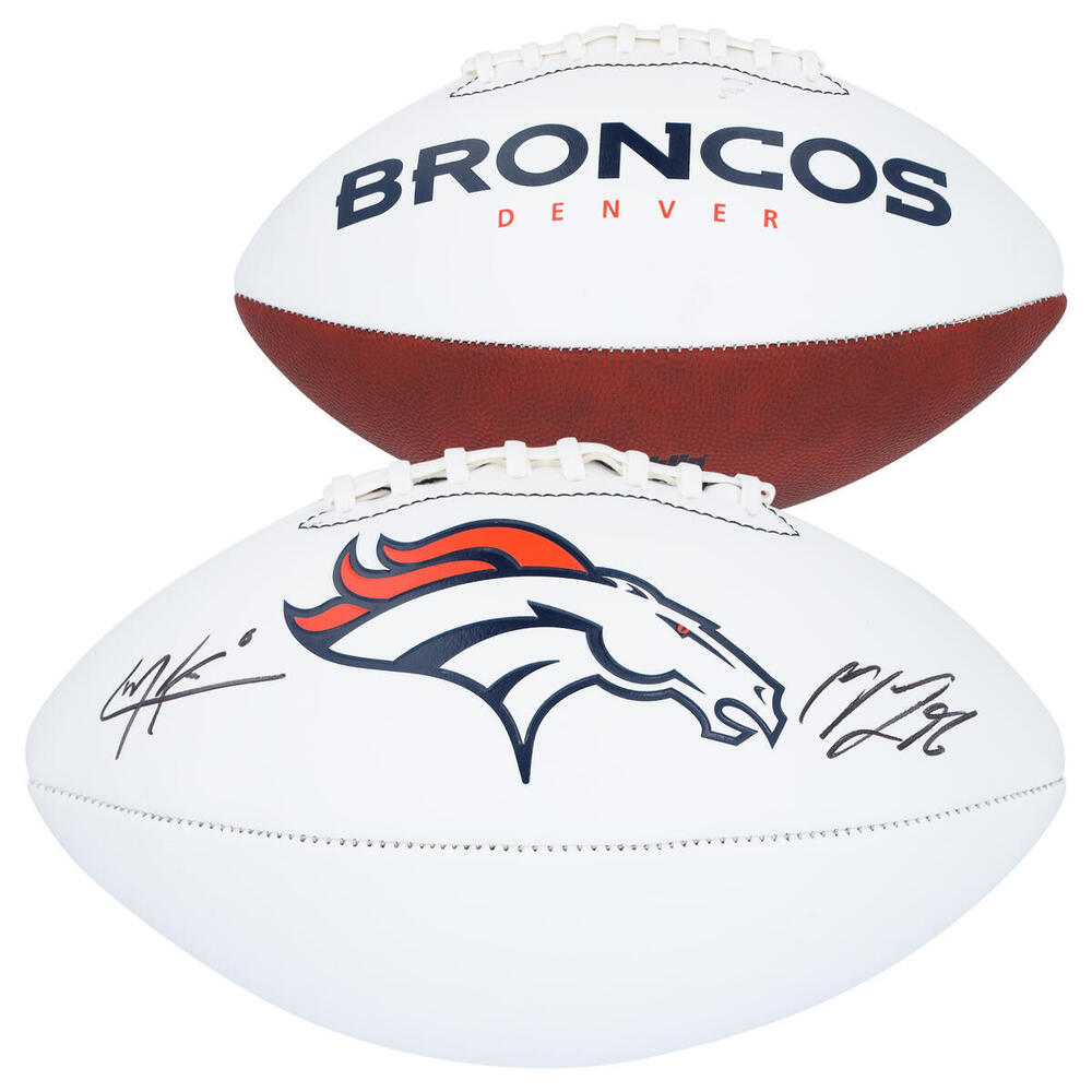 Cale Makar and Mikko Rantanen Colorado Avalanche Autographed Denver Broncos White Panel Football