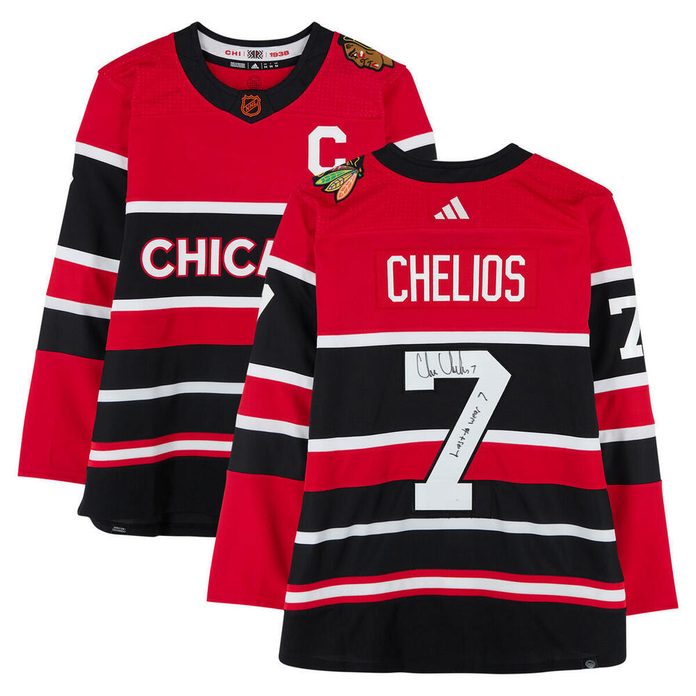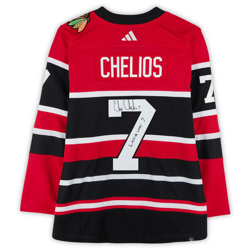 Chris Chelios Chicago Blackhawks Autographed Reverse Retro Adidas Jersey with "Last to Wear #7" Inscription