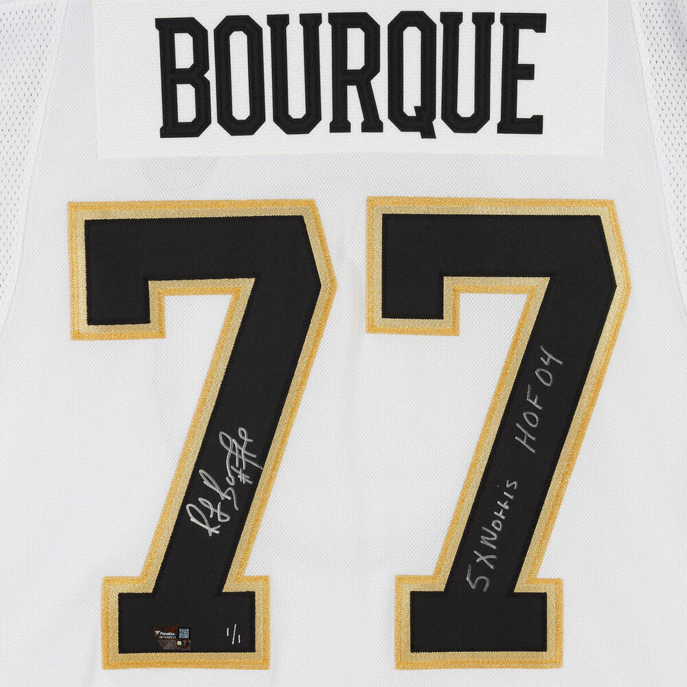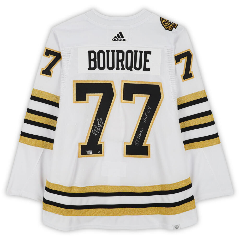 Ray Bourque Boston Bruins Autographed 100th Anniversary Season White Adidas Jersey with Multiple Inscriptions - Limited Edition 1 of 1